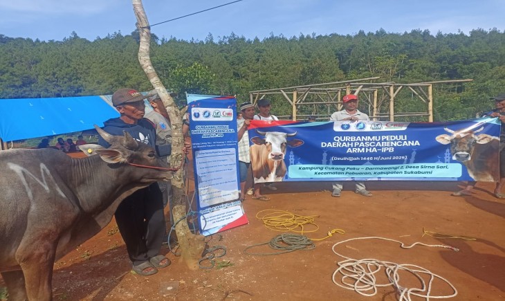 Sehari sebelumnya, Minggu (8/6) ARM HA-IPB juga telah menyerahkan seekor sapi kurban untuk para penyintas banjir dan longsor di Kampung Cipendawa, Desa Cileuksa, Kecamatan Sukajaya, Kabupaten Bogor, Jawa Barat.