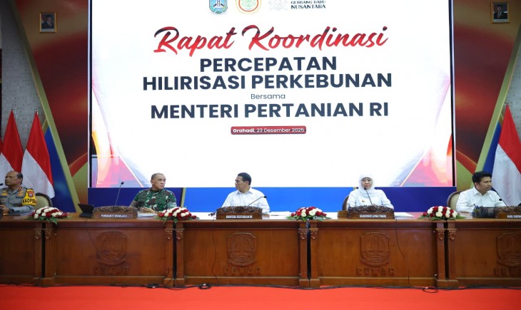 “Kalau Jawa Timur berhasil, nasional insya Allah tahun depan kita tidak akan impor gula putih. Karena lebih dari 50 persen kebun tebu nasional ada di Jawa Timur,” tegas Mentan Amran saat Rapat Koordinasi Percepatan Hilirisasi Perkebunan bersama Pemerintah Provinsi Jawa Timur, BUMN perkebunan, dan jajaran terkait di Surabaya, Selasa (23/12/2025).