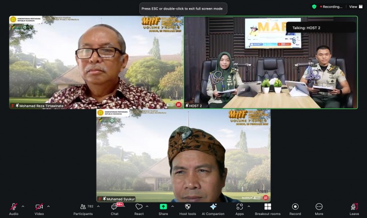 MAF kali ini dipandu oleh host mahasiswa Agribisnis Hortikultura Polbangtan Bogor, Adika Dama Pratista dan Sasti Dayani Ezamelia. Kegiatan menghadirkan narasumber terkemuka: Prof. Dr. Muhamad Syukur (IPB University) yang menyampaikan strategi pemuliaan dan modifikasi lingkungan tumbuh untuk meningkatkan kualitas dan nilai tambah produk hortikultura; serta Dr. Ir. Mohamad Reza Tirtawinata, MS (Yayasan Durian Nusantara) yang berbagi pengalaman praktik budidaya dan pengembangan komoditas buah tropis.