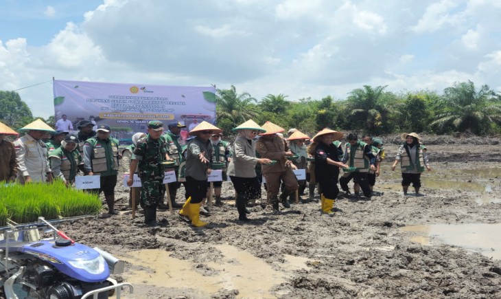 Kegiatan diakhiri dengan penanaman padi menggunakan mesin transplanter dan tabela, sebagai simbol kolaborasi antara teknologi modern dan kearifan lokal dalam mewujudkan ketahanan pangan bangsa. (wsd) (*/Adv)