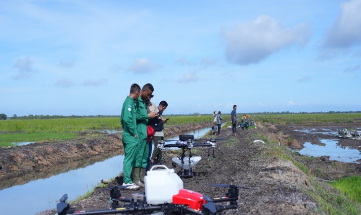 Kuasai Teknologi, Mahasiswa Polbangtan Kementan Operasikan Drone dalam Gerakan Tanam Serempak 10.000 Ha